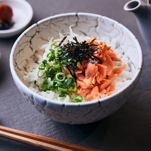 女性の手になじむ小さ目サイズのご飯茶碗です。 美味しくご飯を食べて健康に! ダイエット茶碗とも言われています。 寸法:幅11×高さ5.3×奥行11cm 重量約250g 龍の爪痕のような梅花皮(ちぢれ模様)はそれぞれに違い、同じものは出来ません またサイズや重量も個体差がある事をご了承ください ※電子レンジ・オーブン・食洗機 お使いいただけます